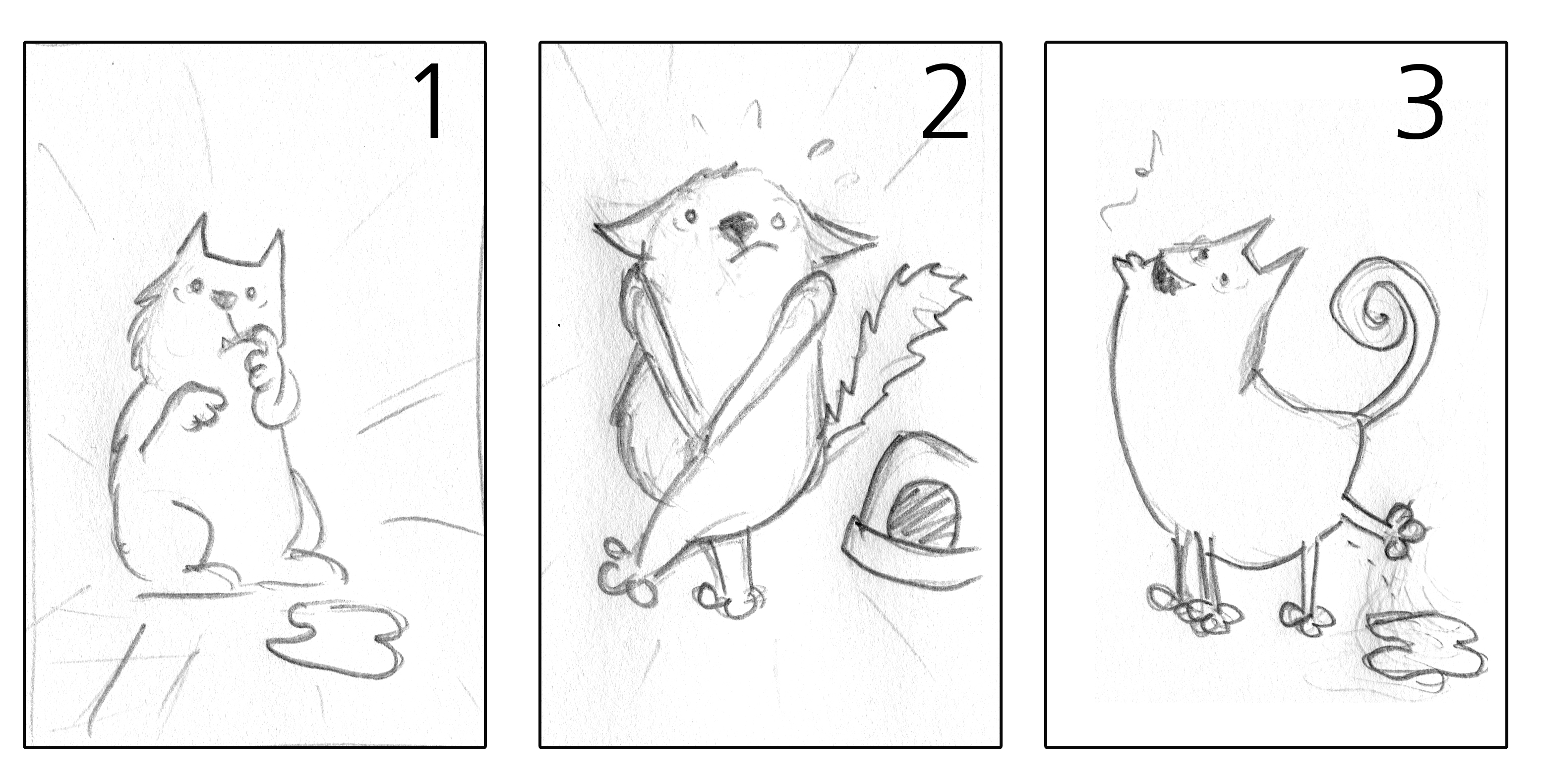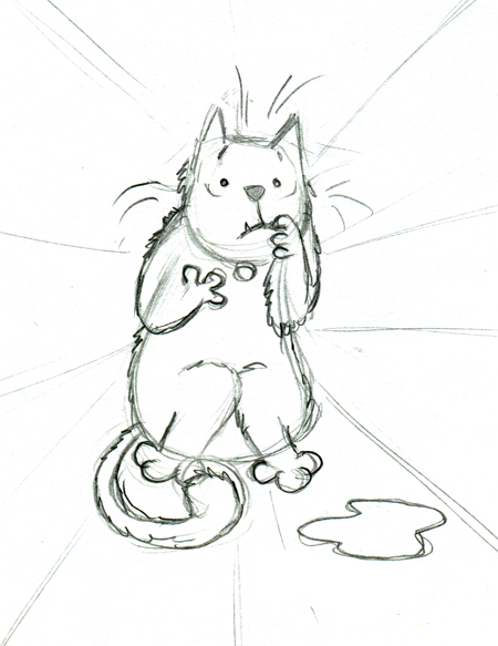 Die erste Entwurfsphase: Hier geht es zunächst nur um die grobe Festlegung der Pose der Katze.