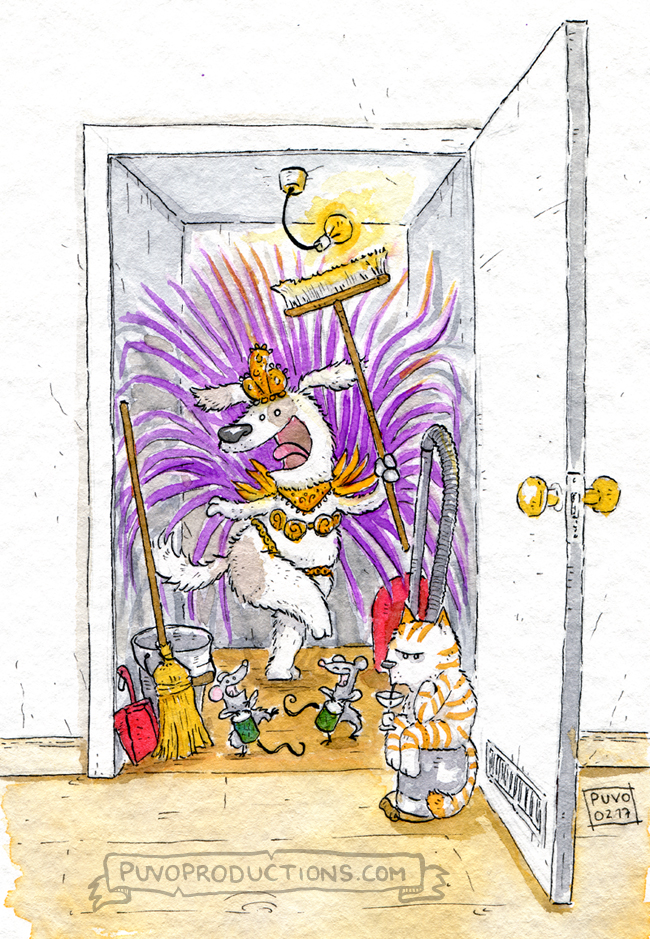 Dies war mein allererstes Bild zum Impro-Freitag zu den Stichworten „Besenkammer“ und „Karneval“, welches ich vor fast einem Jahr auf Facebook gepostet habe. Aus Zeitgründen liegt die Reihe seit letzten Herbst auf Eis, doch sie fehlt mir sehr. Deshalb starte ich hiermit eine offzielle Wiederaufnahme.