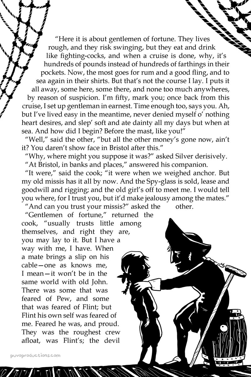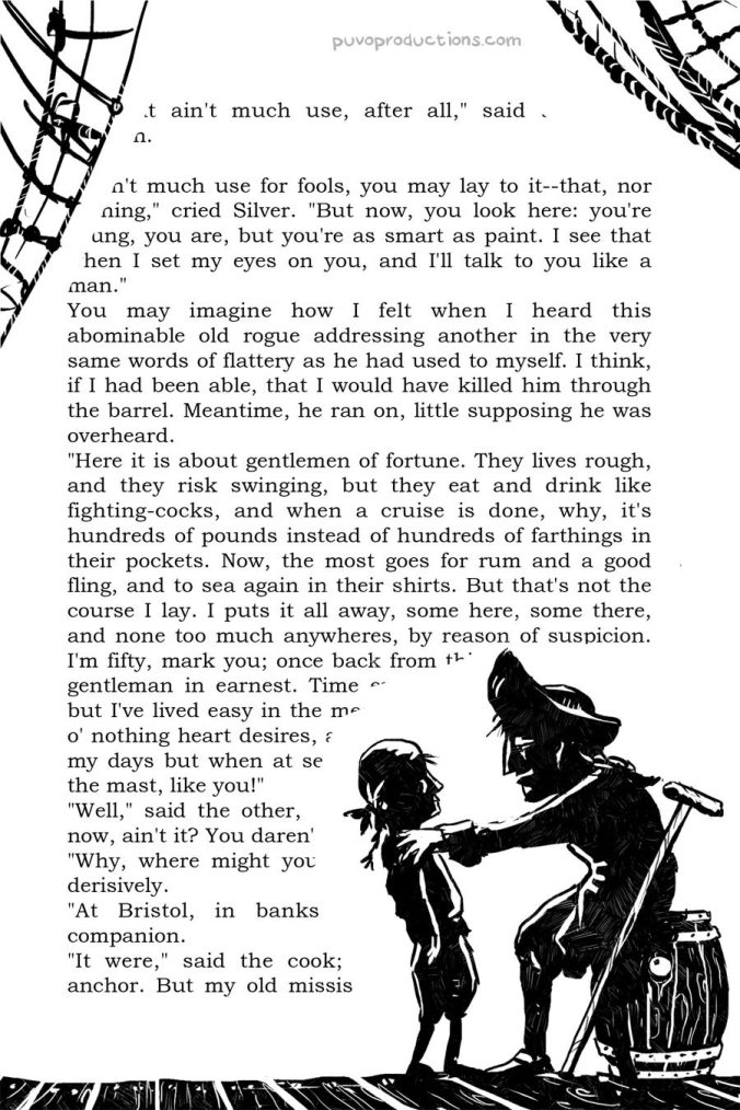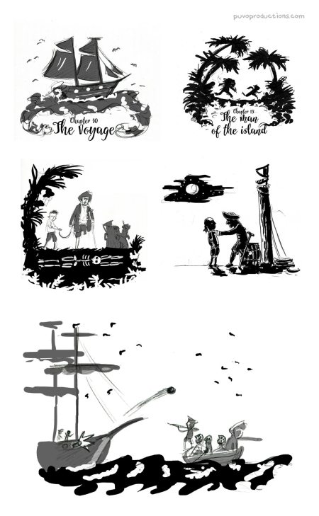Im Rahmen des Seminars habe ich Cover und Illustrationen unter anderem für das Buch „Die Schatzinsel“ gezeichnet.