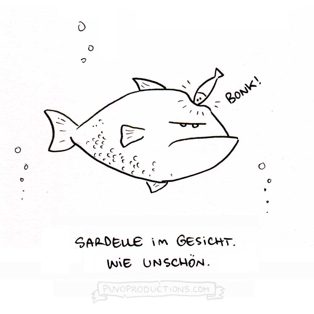 Der wöchentliche Cartoon: Sardelle 17 April 201917 April 2019 / puvo Wie unschön – Sardelle im Gesicht. Cartoon von Josephine Mark / puvo productions Ähnliche Beiträge