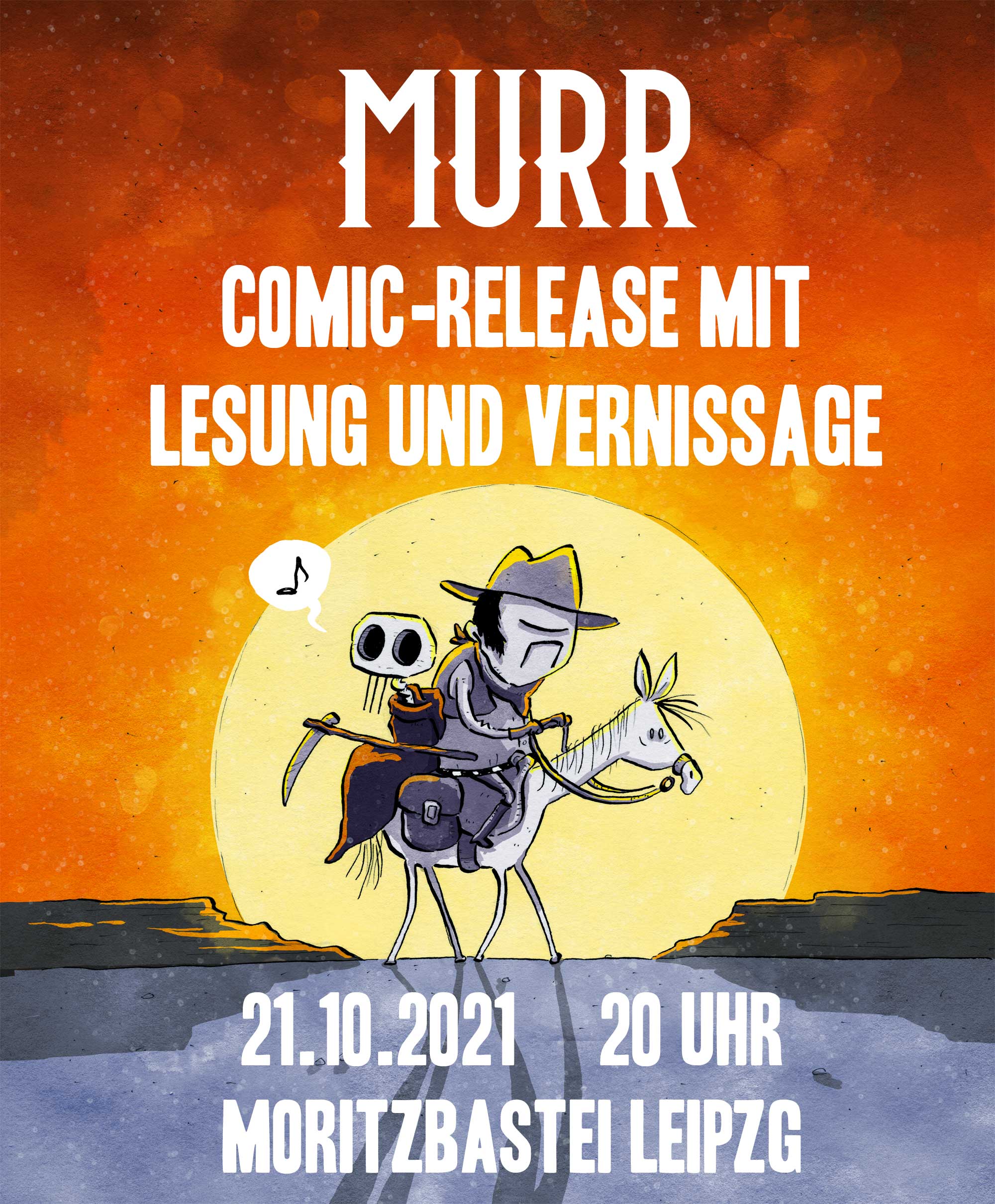 Gemeinsam mit meinem lieben, ehemaligen Kollegen MORITZ werde ich aus „MURR“ lesen. Außerdem gibt es im Café der Moritzbastei eine kleine Ausstellung zum Buch mit Einblicken in den Schaffensprozess. Alle ausgestellten Bilder können nach Ende der Ausstellung käuflich erworben werden!