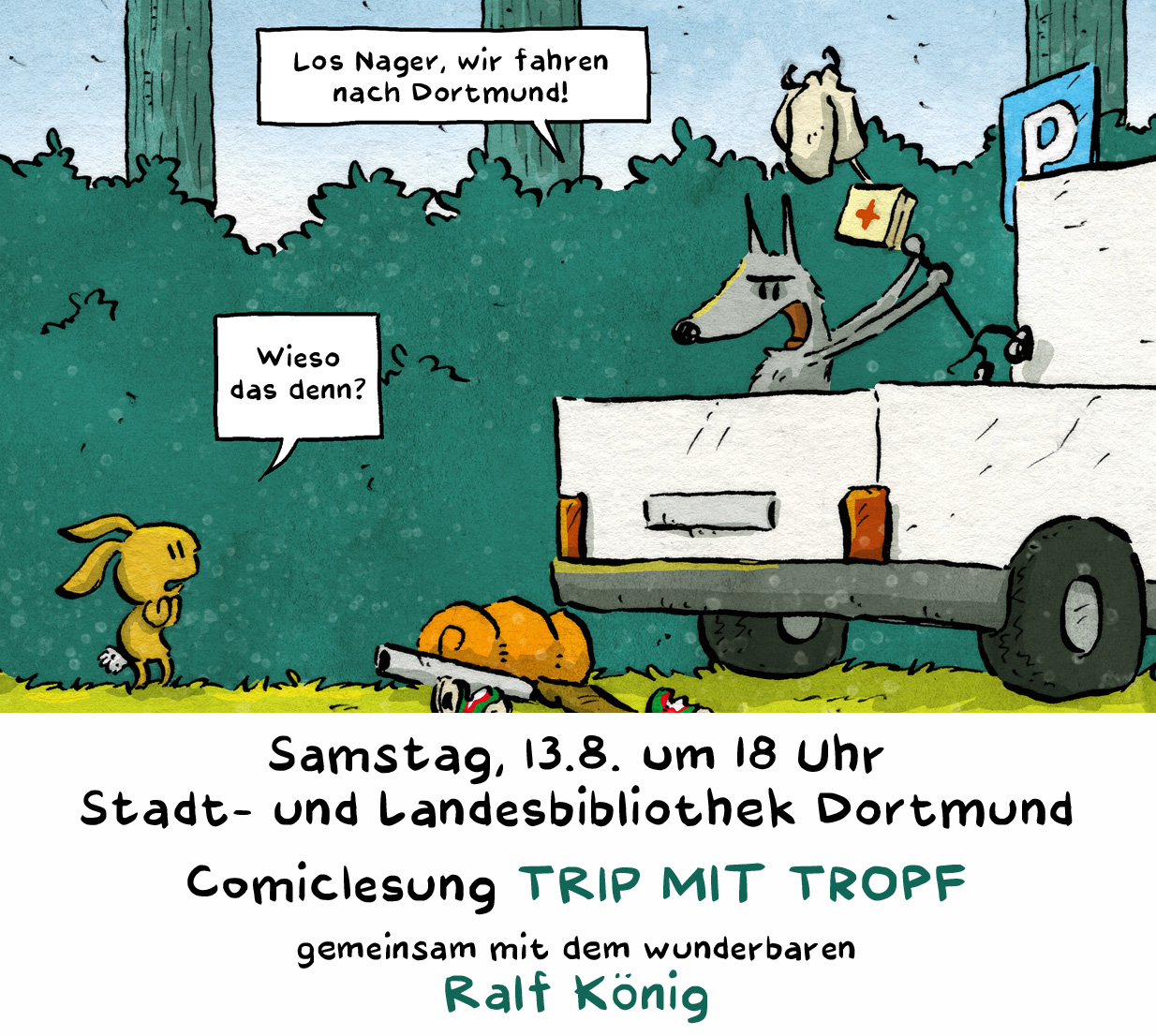 Besonderer Hinweis: Am Samstag um 17:30 Uhr lese ich gemeinsam mit RALF KÖNIG aus meinem Buch TRIP MIT TROPF. Das sollte man sich glaube ich nicht entgehen lassen.