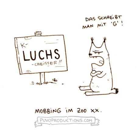 Meine komplette Reihe „Mobbing im Zoo“ plus noch mehr Cartoons gibt´s übrigens als kleines Cartoon-Büchlein… weil doch bald Ostern ist *knick-knack*.