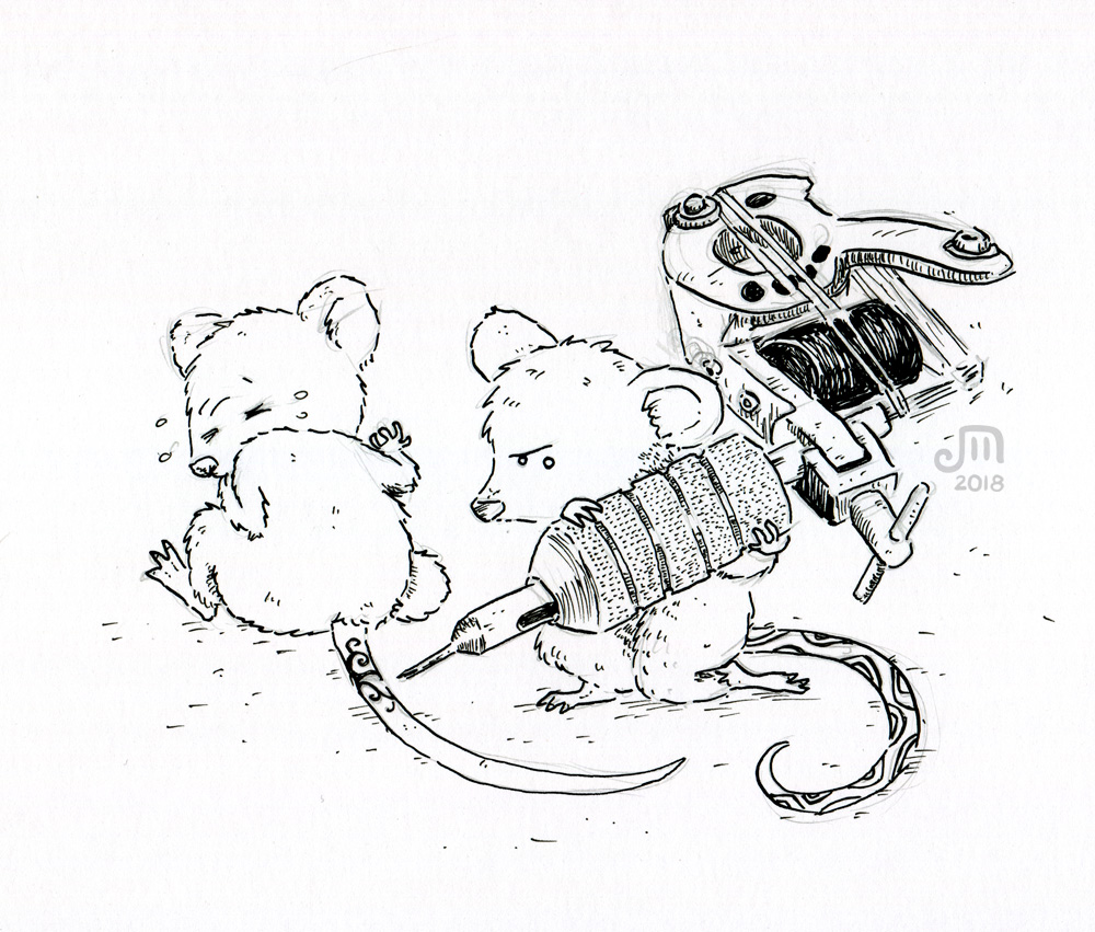 Inktober… zum vierten Mal war ich dabei und nein, es wird nicht leichter, jeden Tag eine Tuschezeichnung zu fertigen. Im Gegenteil. Die größte Hürde dabei ist nicht die Disziplin, sich jeden Tag an den Zeichentisch zu setzen (denn dass mach ich nur zu gern), sondern das winzige tägliche Zeitfenster so zu nutzen, dass am Ende eine Zeichnung steht, die sowohl technisch als auch inhaltlich den eigenen Ansprüchen genügt, es wirklich wert ist, veröffentlicht zu werden. Der Inktober zwingt uns Zeichner zu produzieren, Ideen umzusetzen, auch wenn sie noch nicht ganz ausgegoren sind, uns nicht in Details zu verlieren sondern Dinge fertigzumachen, auch wenn man noch stundenlang daran herumfummeln würde. Das ist einerseits wunderbar, denn der hohe Schaffensdruck sorgt für ein gewisses Laissez-faire spätestens ab Tag 12… eine Sorglosigkeit bei der Umsetzung, die man nur durch Routine erreicht und die für einen enormen kreativen Output sorgt. Diese Arbeitsweise kann wirklich helfen, kreative Blockaden abzubauen und das Zeichnen zu einem festen Bestandteil des Alltags zu machen.